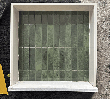 The chosen concrete-effect paint produced a flat, uniform grey rather than the textured, architectural surface I had envisioned. Rather than restart, I experimented with joint compound and tonal washes to build variation and concrete-like texture. The “failure” of the first application became an opportunity to test new techniques and discover a more convincing solution.